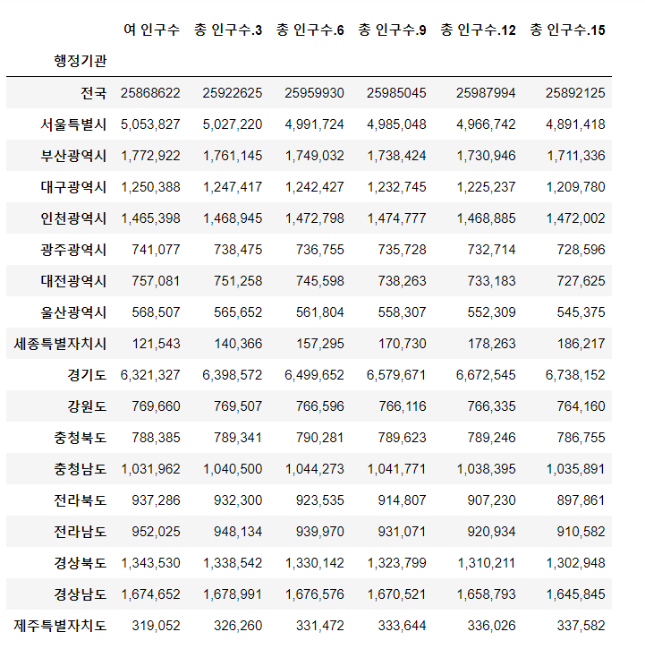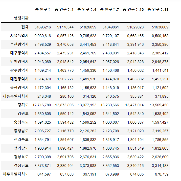 그럼 헤더의 총인구수.1 이런 표시가 연도로 변경된 것을 확인할 수 있다.