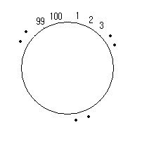 오른쪽 그림과 같이 케익의 둘레에 시계방향으로 1 1001 100까지 일정한 간격으로 번호가 부여되어 있다.